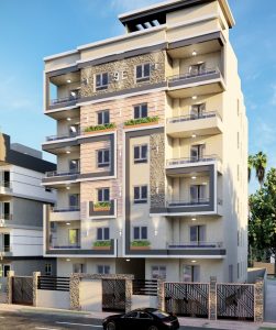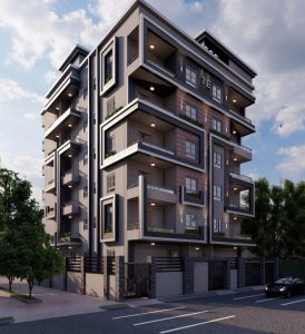 The Hadayek October projects consist of residential buildings comprising a garage, a ground floor, five upper floors, and a rooftop. The building facades feature a modern, contemporary design with natural touches. To ensure a high level of security, each building is surrounded by an iron fence with a central iron gate